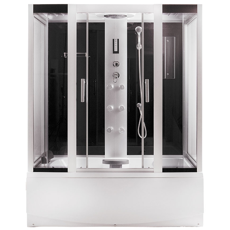 с подсветкой, радио, сиденье, вентилятор, зеркало, полка, ручной душ, телефон, верхний душ |