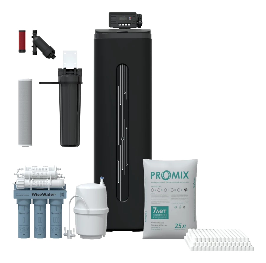 Обратноосмотическая система очистки воды WiseWater Osmos BioEnergy включает в себя 7 ступеней очистки воды:
