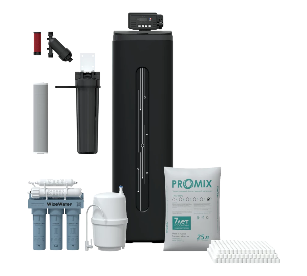 Многофункциональный фильтр SpaceAqua Moderne XF1800 Optimum с французским управляющим клапаном SCA и комплексной загрузкой ProMix предназначен для удаления железа, жёсткости, марганца, аммония и органических соединений природного происхождения.