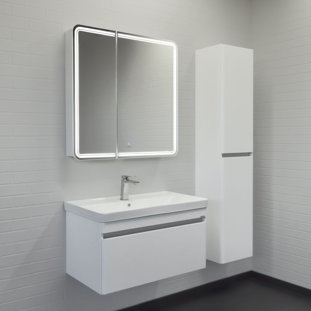 Подвесное зеркало-шкаф со светодиодной подсветкой. Створки оснащены петлями с механизмами плавного закрывания. Высококачественное зеркальное полотно AGC с амальгамой на основе серебра. Корпус зеркального шкафа выполнен из влагостойкого ЛДСП.